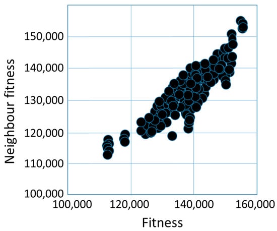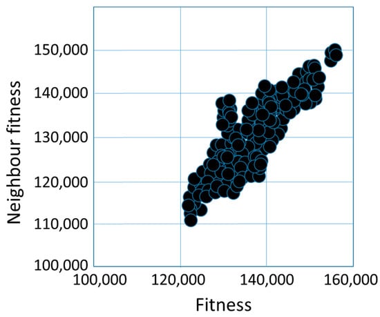 In article [], the authors solve the job shop scheduling problem and analyze the fitness landscape of the task. After measuring the distances between the solutions, a statistical fitness landscape analysis is performed, and the result of the autocorrelation calculation is analyzed.