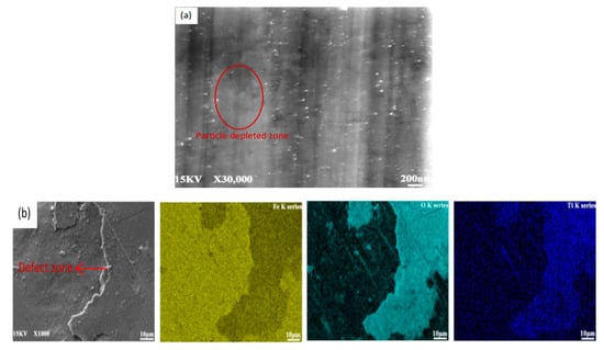 (a) The demonstration from the SEM micrograph for rolling effect; (b) the mending effect on the rubbing surface analyzed through the SEM/EDS analysis [56].