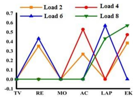 Finally, Equation (5) was used to calculate the probability of the unknown load belonging to each load category. The load category with the highest probability was assigned to the unknown load.