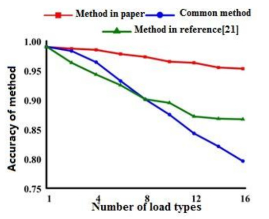 With the improvement of the load type number, the influence for the proposed method is less and the accuracy rate is higher. Indeed, the accuracy rate has been improved.