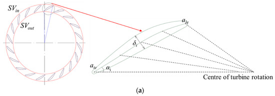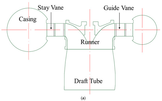 In this study, the turbine efficiency , flow uniformity , head loss , effective head , and flow rate were considered for the evaluation of stay vane design as in Equations (14)–(18). The measurement locations of the flow uniformity at SVout and head loss are calculated by the difference between the total pressure at SVin and SVout, as shown in Figure 3.