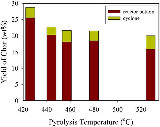 - Azargohar, R.; Nanda, S.; Kozinski, J.A.; Dalai, A.K.; Sutarto, R. Effects of temperature on the physicochemical characteristics of fast pyrolysis bio-chars derived from Canadian waste biomass. Fuel 2014, 125, 90–100. [Google Scholar] [CrossRef]