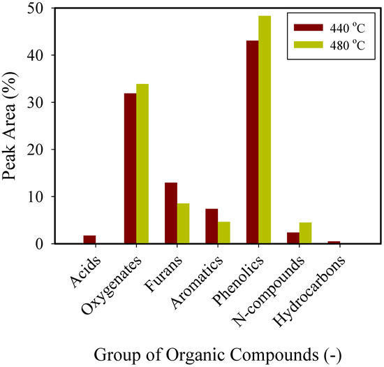 - Klemetsrud, B.; Eatherton, D.; Shonnard, D. Effects of lignin content and temperature on the properties of hydrid poplar bio-oil, char, and gas obtained by fast pyrolysis. Energy Fuels 2017, 31, 2879–2886. [Google Scholar] [CrossRef]