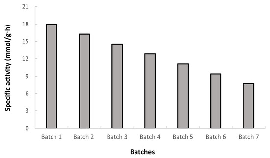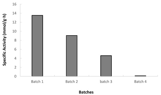 When the conversion falls over each successive reaction batch, the decrease in the specific activity of the enzyme can also be seen (Figure 5).