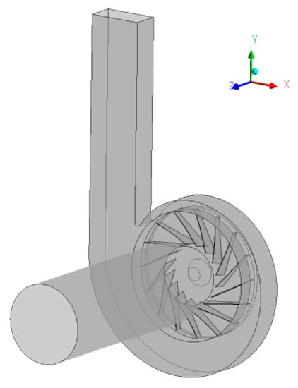 In addition, some scholars studied the interaction among several structural parameters of the impeller. For example, Esra et al. [11] used a neural network method to determine the optimal family of the impeller inlet and outlet radius and inlet and outlet angle to reduce the noise level in the early stage of fan design. Meng et al. [12] studied the influence of three blade structure parameters on the performance of a centrifugal fan, which were inlet angle, outlet angle, and blade number, and obtained that the best combination of the three blade structure parameters using the response surface model (RSM) optimization method. The maximum efficiency was 93.7%.