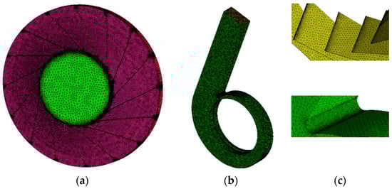 Mesh generation of the impeller and volute. (a) Impeller. (b) Volute. (c) Local refinements.