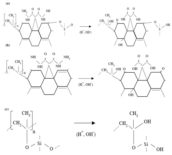 Scheme proposed of hydrolysis mechanism for (a) GF-CPW-PP, (b) CPW-PP and (c) GF-PP.
