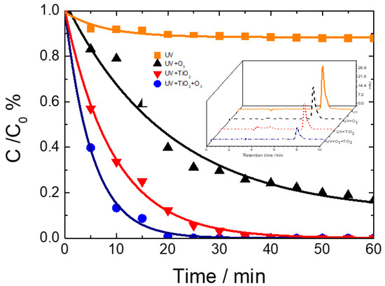 - Sanchez, L.; Peral, J.; Domenech, X. Aniline degradation by combined photocatalysis and ozonation. Appl. Catal. B 1998, 19, 59–65. [Google Scholar] [CrossRef]