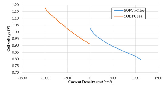 | SOFC (Polarization) | H2 100% | 100% Air | 800 °C |