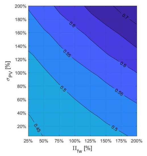 - the renewable energy consumption ratio ( —Equation (6)): it is a measure of renewable energy penetration. Thus, it represents to what extent the load is covered by renewable power generated within the mini-grid;