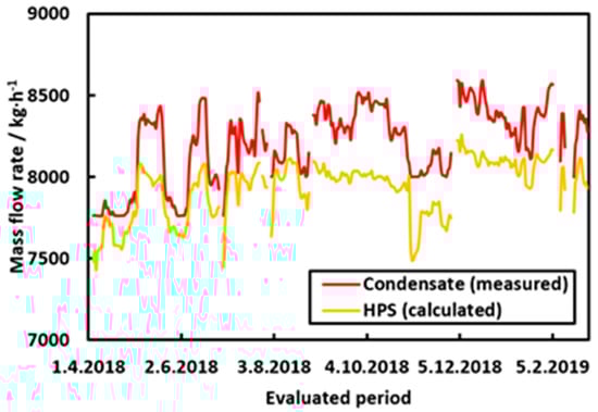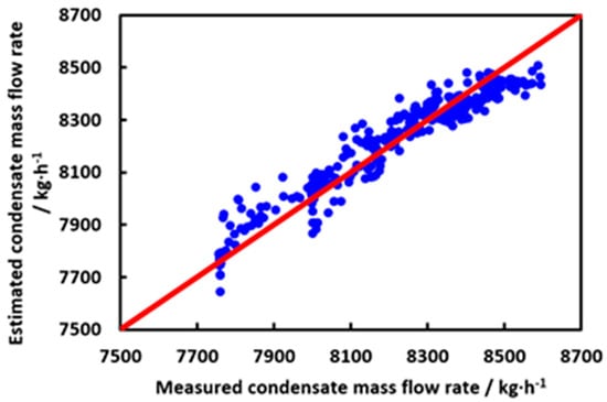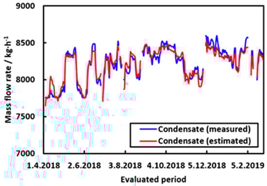 Comparison of measured and estimated condensate mass flow rate over the evaluated period.