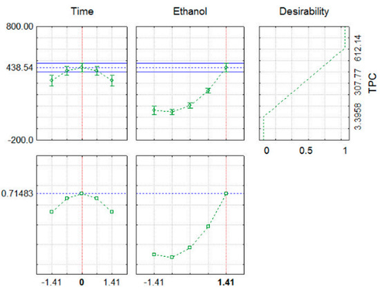 Profiles of predicted values and desirability obtained for the analysis of TPC.