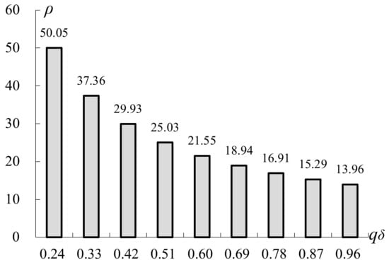 Sensitivity analyses are then performed to investigate the effects of the relevant parameters on the optimal number of conforming items for inspection. With respect to the contraction constant, the variations in ρ within a range of 60% of the original estimate of qδ are observed in Figure 1, which indicates that ρ is negatively correlated with qδ.
