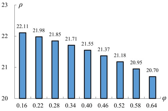 Figure 3 addresses the variations in ρ with respect to the defective rate, which ranges between −60% and 60%, and shows that ρ is negatively correlated with φ. A higher defective rate indicates an unsteady manufacturing process with a low working efficiency. Therefore, a higher number of conforming items for inspection is necessary to achieve the minimum total cost.