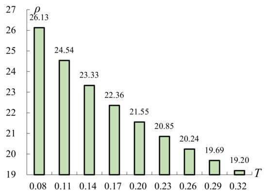 The production run length, which ranges between −60% and 60%, is analyzed to observe the corresponding variations in ρ. It can be seen in Figure 4 that ρ is negatively correlated with T. It is due to the fact that a longer production run generates a lower learning rate, which results in a higher learning effect. This may help assemblers produce high-quality products. Thus, for a long production run length, the required number of conforming items for inspection to minimize the total cost is smaller.