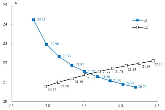 Let Equation (18) be zero; then, ρ is obtained as