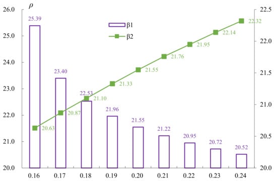 As can be seen in Figure 7, given the changes in the shape parameters of the Weibull product deterioration, which ranges between −20% and 20%, ρ is negatively correlated with β1, whereas ρ is positively correlated with β2.