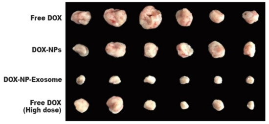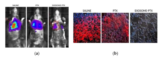 Knowledge of these techniques provides some background into the posteriorly referred clinical applications. Several in vivo experiments were performed, using different isolation and loading methodologies. Results of different investigations will be discussed, evaluating the efficacy of exosome-based treatments using paclitaxel (PTX), small interfering RNA (siRNA), and doxorubicin (DOX) [12,13,14].