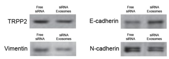 - Wang, C.; Chen, L.; Huang, Y.; Li, K.; Jinye, A.; Fan, T.; Zhao, R.; Xia, X.; Shen, B.; Du, J.; et al. Exosome-delivered TRPP2 siRNA inhibits the epithelial-mesenchymal transition of FaDu cells. Oncol. Lett. 2019, 17, 1953–1961. [Google Scholar] [CrossRef] [PubMed]