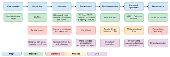 Figure 1. Process flow used for bioethanol production from waste banknote paper.