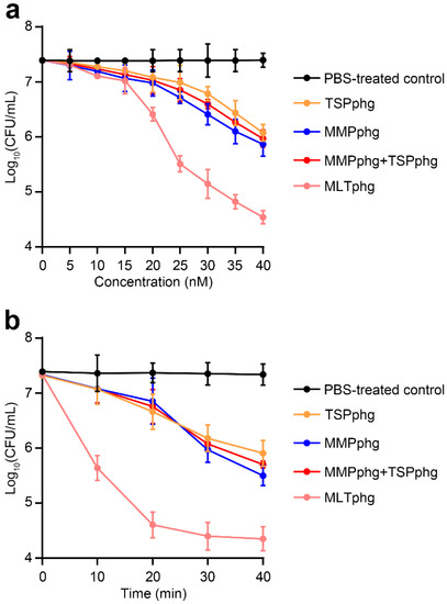 3.5. Comparison of Bactericidal Activity between MLTphg and Its Parental Lysins against Various Gram-Negative or Gram-Positive Bacteria