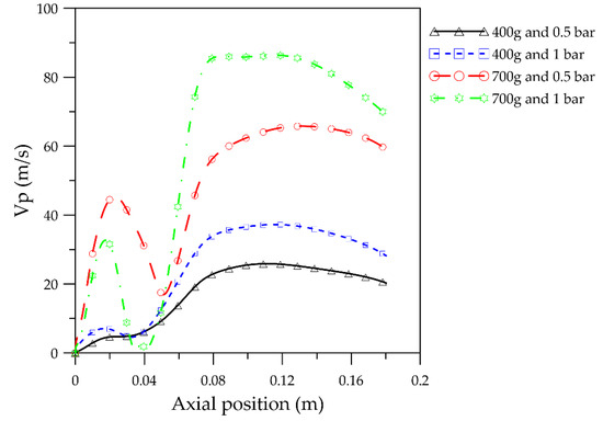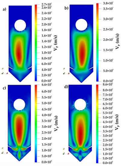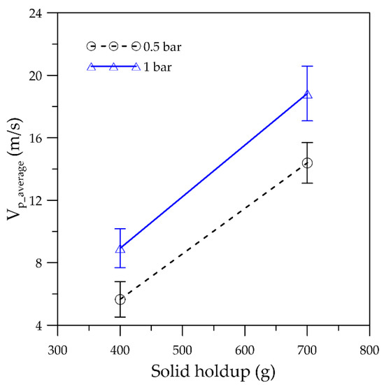 3.1. Influence of the Solid Holdup and the Nozzle Inlet Pressure on the Volumetric Average Particle Velocities
