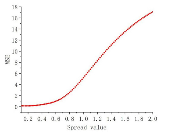 The mean-square-error (MSE) at different spread values.