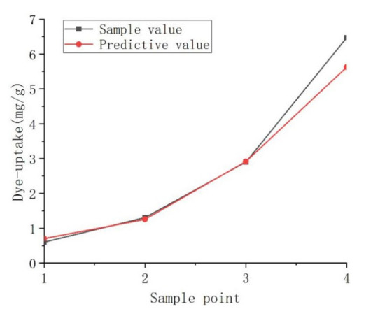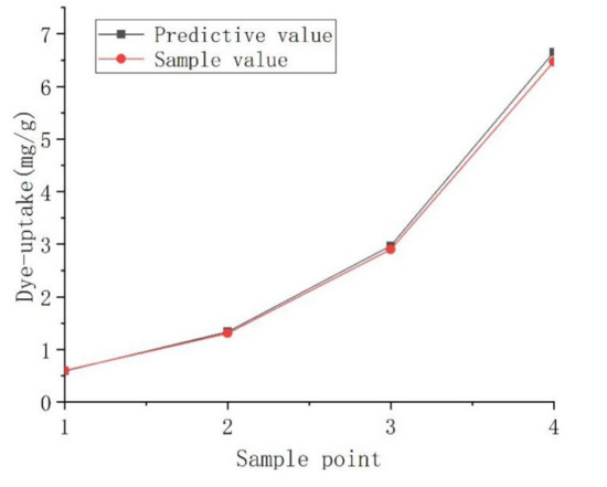 The prediction results of the BPNN model based on K/S value and dye-uptake data were shown in Table 4. According to Table 5, it can be seen that, from all the results of K/S value or dye-uptake as the output variable, the MRE of BPNN model for 14 groups data are 1.68–3.32%, respectively, which shows that the BPNN model can accurately predict the effect of supercritical dyeing.