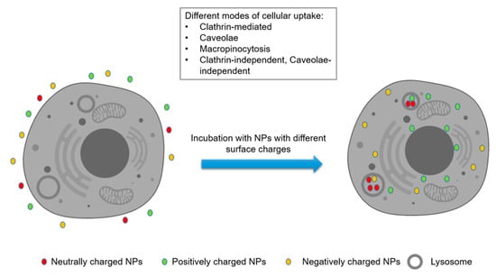 - Fröhlich, E. The role of surface charge in cellular uptake and cytotoxicity of medical nanoparticles. Int. J. Nanomed. 2012, 7, 5577–5591. [Google Scholar] [CrossRef]