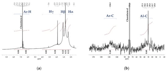 (a) 1H NMR; (b) 13C NMR asphaltenes spectra.
