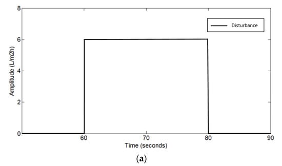 30% step disturbance; (a) amplitude of 6 L/m2h, (b) flux performance.