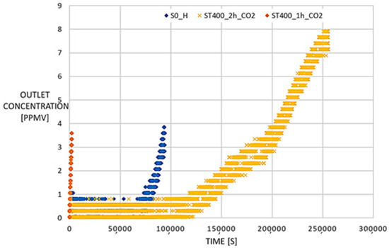 ST400_2h_CO2 breakthrough curve, the effect of activation dwell time.