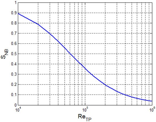The suppression factor SNB is a function of a two-phase Reynolds number, ReTP: