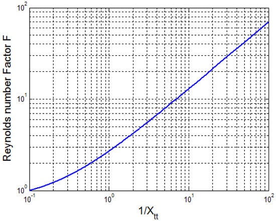 denotes the Reynolds number factor. This factor accounts for the enhanced flow and turbulence due to the presence of vapor. This term can be approximated by [18]: