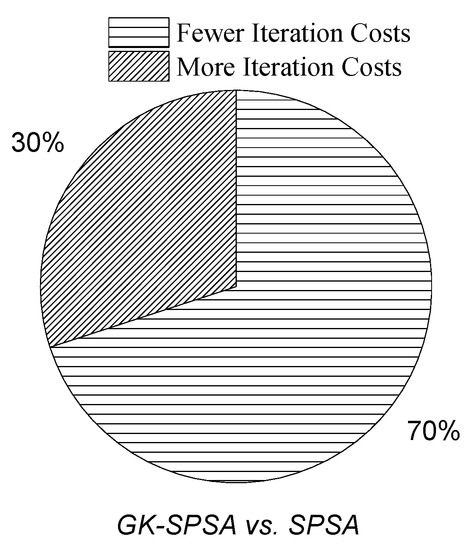 Figure 5b shows the trajectories of the iteration step size of GK-SPSA and SPSA. It was clear to see that the GK-SPSA could tune its iteration step size adaptively, in the meantime, not deteriorate the convergence ability of SPSA.