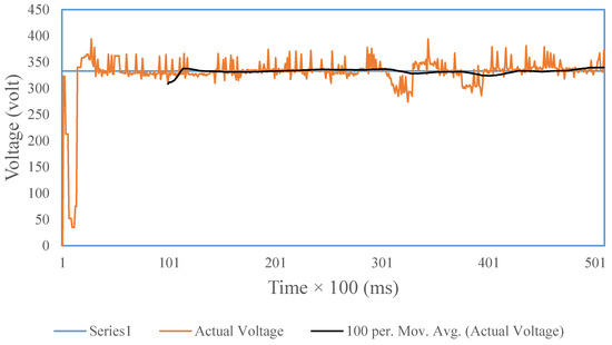 Output voltage value of the SOFC simulator with a controller.
