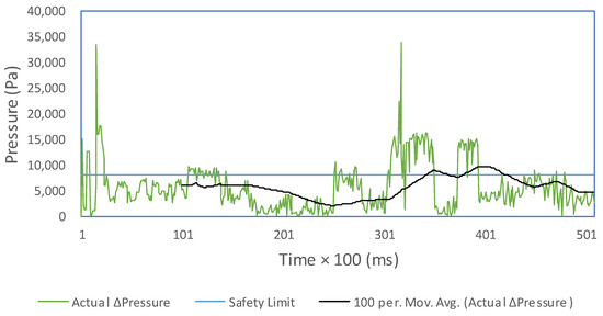 ∆Pressure hydrogen–oxygen of the SOFC with negative disturbance.