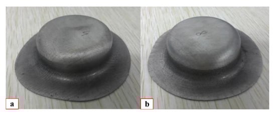Hot stamping parts of experimentally stamped ZK60 magnesium alloy: (a) Obtained part at the parameters of compromise solutions 1; (b) Obtained part at the parameters of compromise solutions 2.