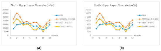 Upper (a) and lower (b) flow rate values of the northern part of the strait.