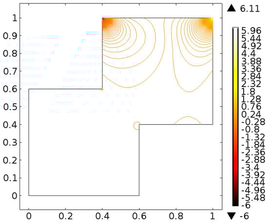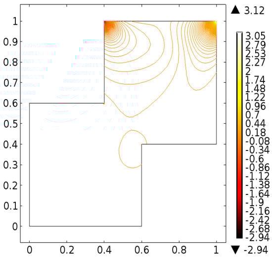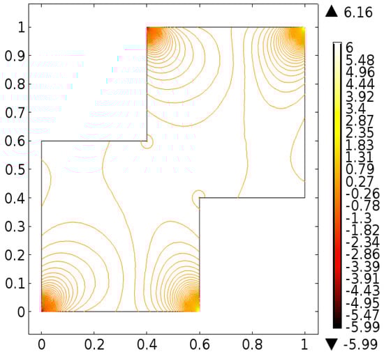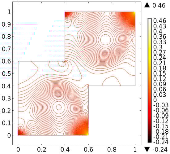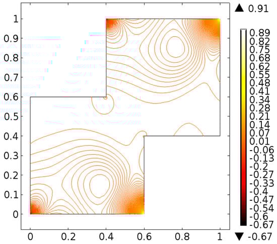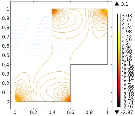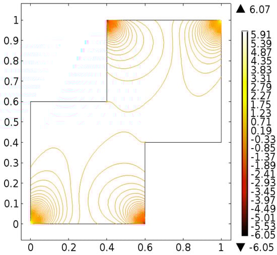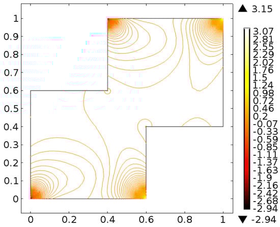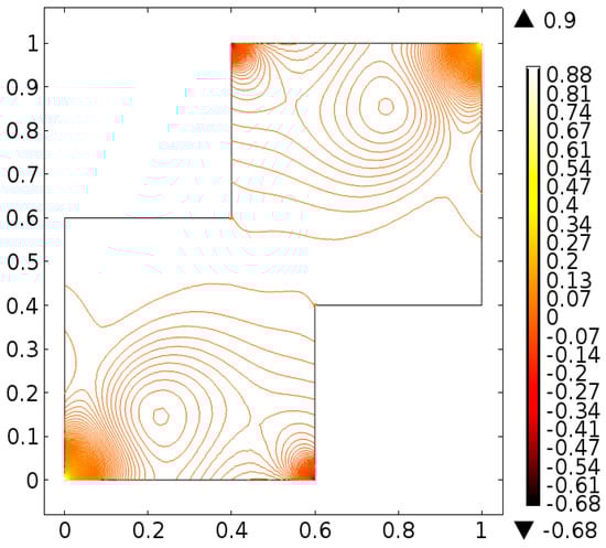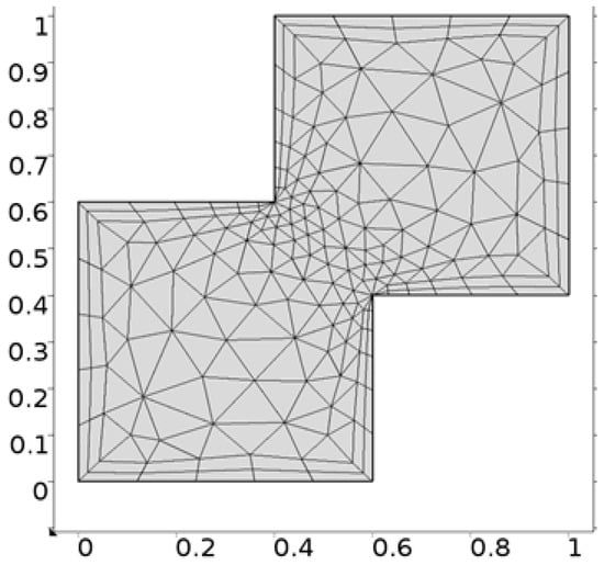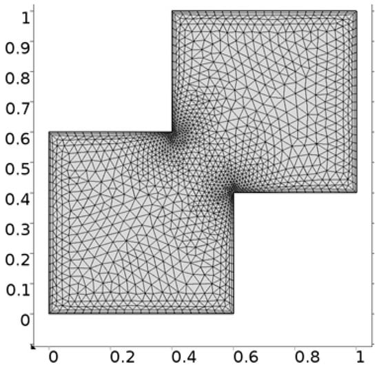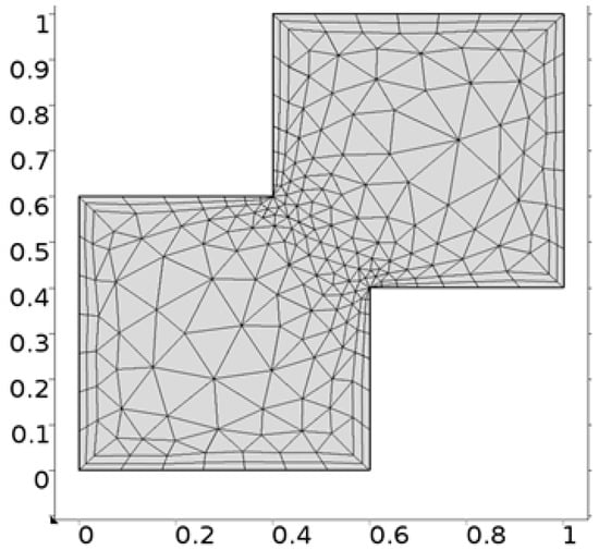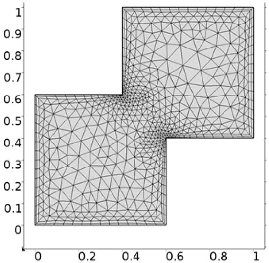 It is important to note that one cannot find exact solution of Equations (10) and (11) along with boundary conditions provided in Equations (12)–(14), therefore, the finite element scheme is utilized to report the better approximation. A finite element method [,,] is one of the most powerful numerical method and commonly used approach to solve the boundary value problems. This method has the application for the modeling and simulation of different physical phenomena in interconnect structures. For the finite element method the key six steps are