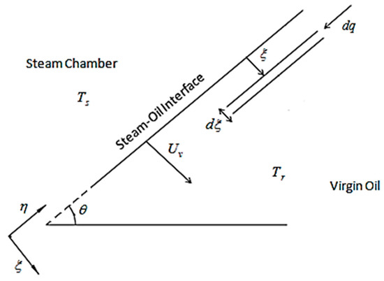 Figure 2. An element ahead of the steam-oil interface where the heated oil flows downward [19]. Reproduced with permission from (Sabeti et al.), (Handbook On Oil Production Research); published by (Nova Science Publishers, Inc.), (2014).