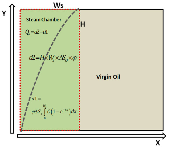 where, b and C are dimensionless coefficients and L represents the length of the steam-oil interface layer. Compared with Equation (1), Equation (2) has a second term which implicitly defines the influence of the interface curvature over the amount of the production rate. Compared with the old version of the SAGD models, this exponential geometry had a promising accuracy in both the interface location and the oil production rate. Shi and Okuno [16] took Reis’s idea and temperature variation along the edge of a steam chamber account to develop an analytical model to estimate oil production rate and steam oil ratio (SOR) in the Surmont SAGD project.