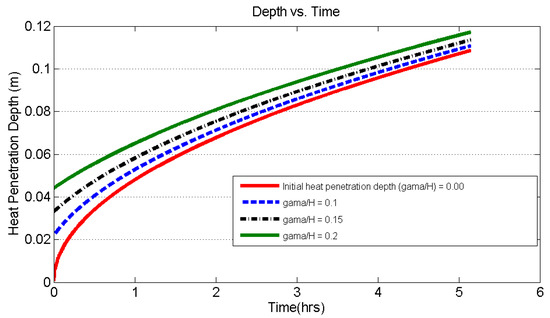 Now, substituting Equation (A9) into Equation (A5), a simplified relation for the heat penetration depth used in this paper is obtained.