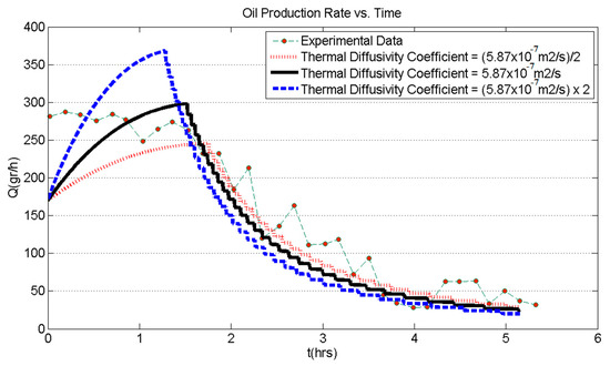In Equation (5), Butler simply related the oil viscosity at distance ζ to heat penetration depth, γ . Now, combining Equations (3)–(5), the oil production rate is calculated: