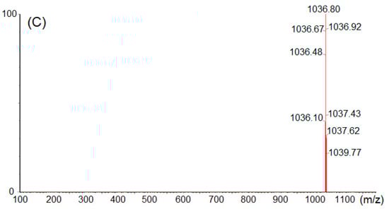 Mass spectral analyses (A) NT-5, (B) NT-6 and (C) NT-7.