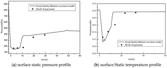In hydraulic machinery, cavitation occurs easily, which affects the operational stability of the whole unit. A cryogenic liquid expander is similar to conventional hydraulic machinery, cavitation may still occur []. The cavitation experiment of the cryogenic medium is difficult to operate, and the related research is less. Hord [,] carried out a series of detailed experiments with airfoils, blunt bodies and other experimental bodies of different sizes, and obtained the cavitation flow images of liquid nitrogen and liquid hydrogen, which has become an important index to verify the accuracy of numerical simulations.