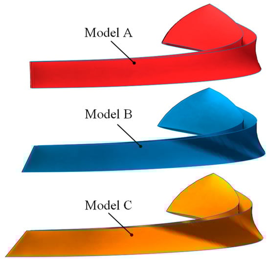 Optimized Model A, B, and C blade shapes.