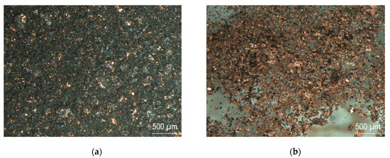 The reduction of Cu(I) to Cu(0) is in agreement with STA results and with literature data on the Cu–CuO system []. Furthermore, Fe(III) was mostly reduced to Fe(II) and only a smaller portion remained present in magnetite (Fe3O4). The presence of hexagonal FeO has been described at high pressure [], but not at low-pressure, high-temperature environments like the experimental setup used for thermal treatment. The observation that Cu can be selectively reduced from the abrasion product is positive with respect to recycling in two ways: Firstly, no further reduction of Cu would be needed, and secondly, metallic Cu can be more easily separated from the iron phases, either by its higher electric conductivity, different colour, higher density or lower magnetic susceptibility.