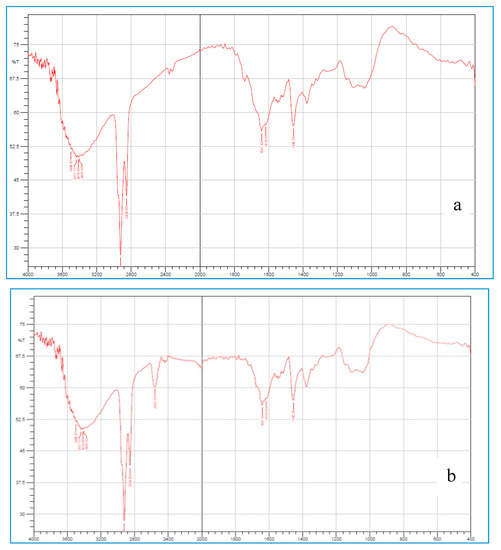 The Fourier Transform Infrared Radiation (FTIR) spectral measurements were taken at ambient temperature using an IR spectrophotometer (Perkin Elmer Instruments, North Billerica, MA, USA). These were done qualitatively in order to assess the pattern of peaks and for comparison purposes [25]. The FTIR spectra of OG and TOG were taken by making a KBr disc and analyzed in the range of 400–4000 cm−1.