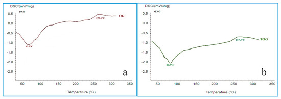 Differential scanning calorimetry (DSC) thermograph of OG (a) and TOG (b).